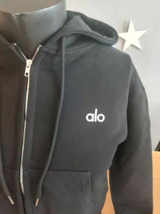 Sudadera con capucha y cremallera completa. - Logo de Alo bordado en el pecho. - Bolsillos frontales tipo canguro. - Puños y bajo elásticos.
