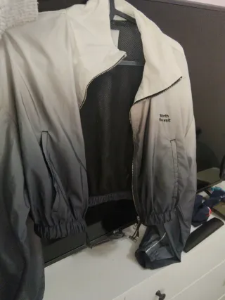 Chaqueta con un diseño moderno y capucha. - Cierre de cremallera frontal. - Bolsillos laterales. - Detalle de cordones en la capucha.