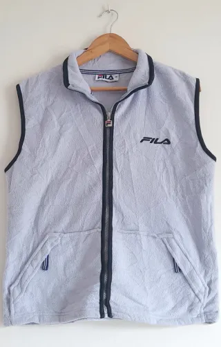 Chaleco polar Fila de estilo retro para mujer. Es una prenda cómoda y versátil. - Diseño sin mangas. - Cremallera frontal. - Bolsillos delanteros.