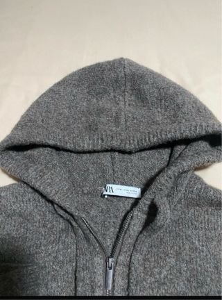 Chaqueta de punto con cremallera y capucha. - Diseño de punto grueso. - Cierre completo con cremallera. - Capucha integrada. Muy poco uso. Es marrón en la foto no se percibe bien el color
