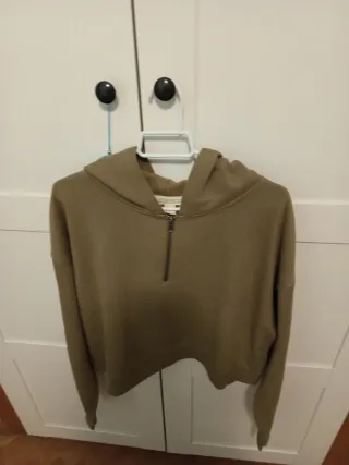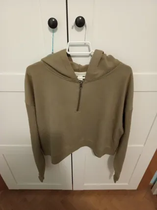 Sudadera con capucha de corte cropped y cremallera. - Diseño moderno y cómodo. - Color verde militar. - Cremallera frontal.