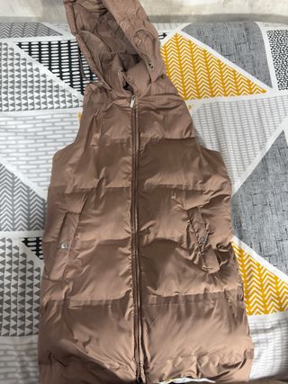 Chaleco acolchado largo con capucha. - Cierre de cremallera. - Bolsillos laterales. Es como la talla M