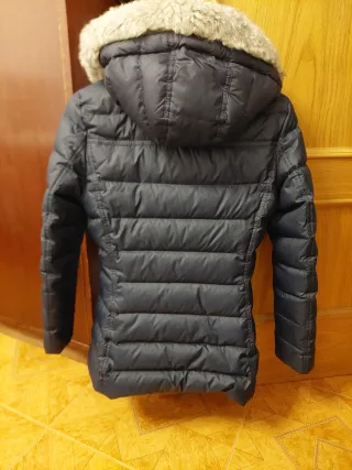 Chaqueta azul marino con capucha, talla S.