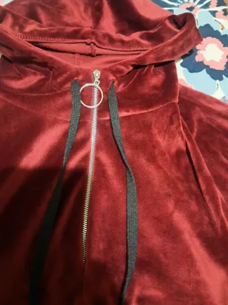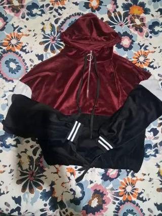 Sudadera tipo canguro con capucha y cremallera.Para S/M - Tejido de terciopelo. - Diseño bicolor. - Puños con detalle de rayas.