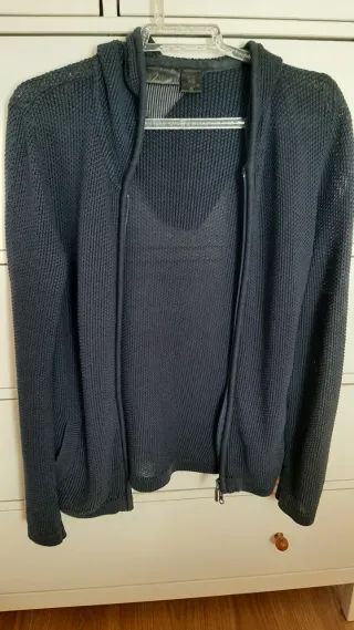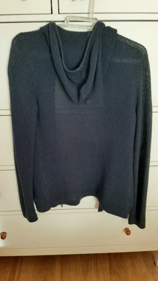 Chaqueta de punto con cremallera y capucha. Talla S, como M. Da talla. - Tejido de punto fino. Algodón 50% orgánico. - Cierre de cremallera. - Bolsillos laterales.