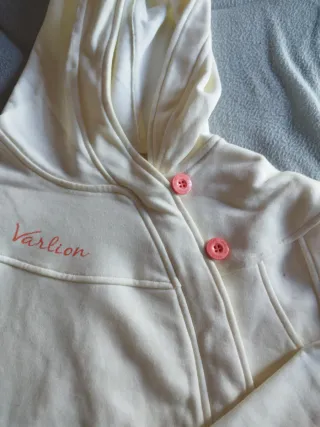 Sudadera con capucha de la marca Varlion. - Diseño cruzado con botones y cremallera. - Logo bordado en color salmón. - Puños y bajo elásticos.