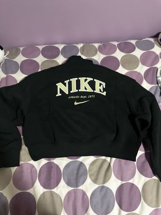 Sudadera deportiva de mujer con un diseño moderno y cómodo. - Cuello alto con media cremallera. - Logo de Nike en el pecho. - Corte cropped.