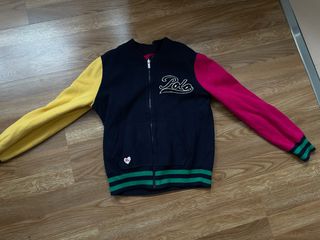 Sudadera reversible original de Polo Ralph Lauren. Dos diseños en una sola prenda: • Lado 1: azul marino con mangas en colores amarillo y fucsia, logo “Polo” bordado. • Lado 2: fucsia con detalle de oso Polo bordado. Tejido grueso, cómoda y calentita, ideal para otoño e invierno. Con cremallera y bolsillos. Una prenda muy especial y difícil de encontrar. Estado: como nuevo, muy bien conservada. Talla: L/G (12–14 años). Marca: Polo Ralph Lauren. 100% original.