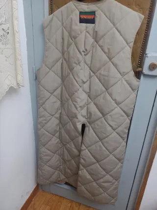 Chaleco largo Italiano con cierre de cremallera. - Diseño acolchado con rombos. - Largo hasta la rodilla. - Sin mangas. La cremallera no lo pude enganchar por ello lo usaba abierto.