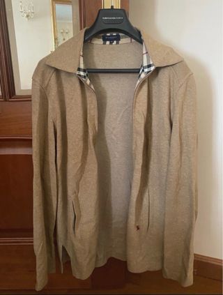 Chaqueta de punto con cremallera frontal y cuello alto con postizo de piel como se ve en la foto. Medidas ancho 45cm y largo 50cm. Usada pero está en perfecto estado. - Diseño de trenzas. - Bolsillo en el pecho. - Detalle de logo en la cremallera.