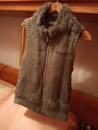 Elegante chaleco de la marca Cortefiel, combina piel y punto. - Diseño con cuello de pelo. - Cierre de cremallera frontal. - Puños y bajo de punto. - Color gris.