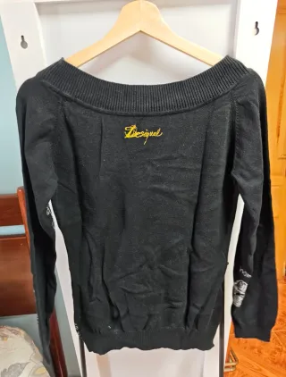 Sudadera negra con estrellas plateadas. Talla S. Medidas hombros 53 y largo 57 - Manga larga. - Cuello redondo. - Estrellas plateadas.