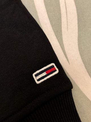 Sudadera de manga larga con un diseño moderno y llamativo. - Logo grande de Tommy Jeans en la manga. - Pequeño logo en el pecho. - Cuello redondo. - Usada una vez, en perfecto estado
