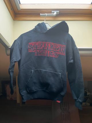 Sudadera negra con el logo de Stranger Things. - Talla XXS tambien ideal para niños de 12-14 años. - Diseño con el icónico logo de la serie.