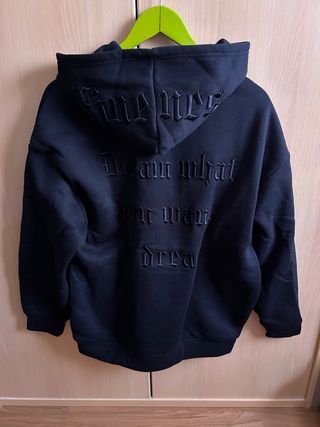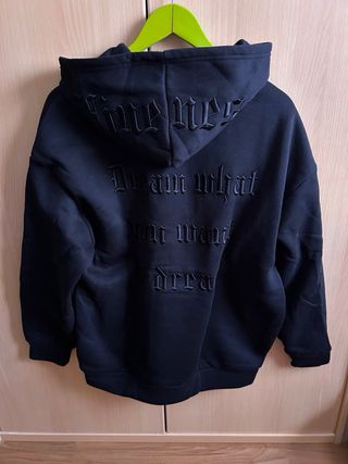 Sudadera con un diseño gráfico en la espalda. Unisex Talla S (Oversize) Sin usar - Estampado en relieve con texto. - Capucha. - Manga larga.