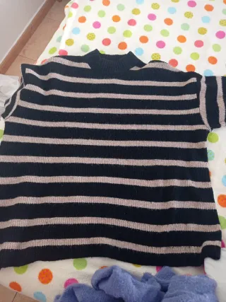 💰SOLO CON PAGO POR WALLAPOP ▶️ELEGIR ENVÍO POR INPOST. NO ENVÍO POR CORREOS!! Elige varios artículos de mi perfil, y paga sólo un envío No se reserva sin compra ➡️ También entrego en mano. Pedido mínimo de 3€ 📍Jersey de punto con diseño de rombos. - Cuello en V. - Manga larga. - Diseño de rombos en contraste.
