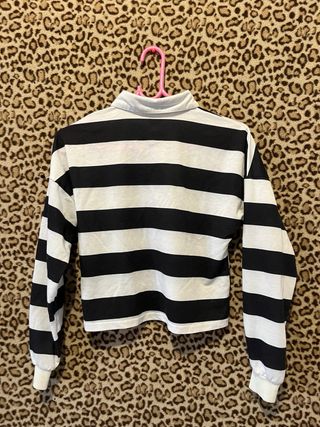 Jersey de manga larga con cuello tipo polo y estampado de rayas. - Diseño de rayas horizontales. - Cuello con botones. - Corte cropped.