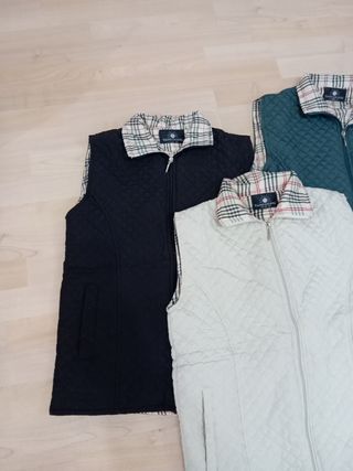 hola vendo chalecos con bolsillos, precio individual y si quieres los tres 20€ colores negro,beige y verde oscuro.T/L pero da como una M mejor ver gracias