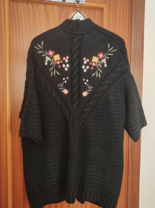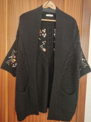 Rebeca punto grueso con bordados en espalda y mangas. Buen estado. Manga francesa