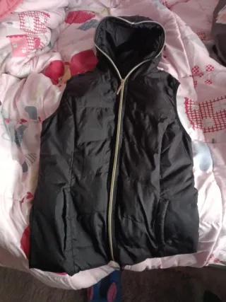 Chaleco largo de la marca Pull&Bear en color negro. Es una prenda versátil y moderna. Talla S da talla para M también - Diseño acolchado. - Con capucha. - Cierre de cremallera.