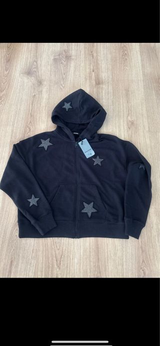 Sudadera con cremallera completa y capucha, adornada con detalles de estrellas. - Diseño con capucha. - Cierre de cremallera. - Estrellas decorativas.