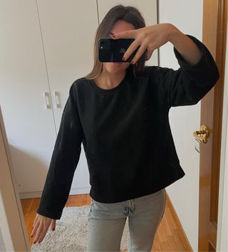 Sudadera básica de Shein en color negro. - Cuello redondo. - Manga larga. - Puños y bajo elásticos.