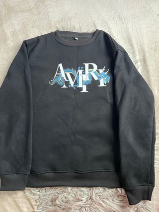 Sudadera negra con un diseño llamativo en el pecho. - Estampado de dragón azul. - Logo AMIRI. - Cuello redondo.
