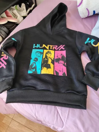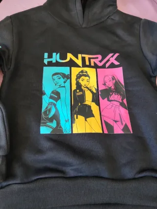 Sudadera con capucha y un llamativo diseño gráfico en el frontal y las mangas. 130cm - Estampado HUNTRX en la parte delantera. - Ilustraciones de tres chicas en recuadros de colores. - Detalles del logo HUNTRX en las mangas.