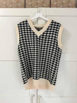 Chaleco de punto vintage cuadros blanco y negro