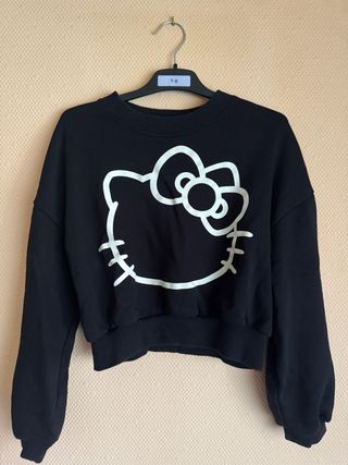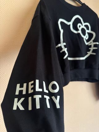 Jersey negro con estampado de Hello Kitty. - Diseño de Hello Kitty en blanco. - Manga larga. - Cuello redondo.