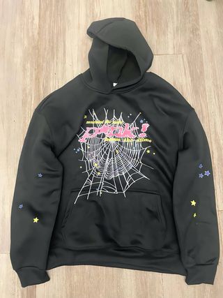 Sudadera con estampado de telaraña y estrellas. - Diseño frontal con Pink! y telaraña. - Detalles de estrellas en las mangas. - Capucha y bolsillo frontal.