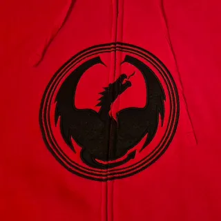 - Sudadera con el llamativo logo de dragon bordado en el pecho. El diseño circular presenta el símbolo dragon estilizado en tonos grises sobre un fondo negro - Logo de dragon bordado - Diseño circular - Cremallera central roja