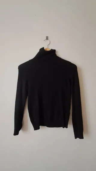 Jersey de punto fino para mujer con cuello alto. - Diseño de manga larga. - Puños con detalle de botones. - Tejido suave y cómodo. - En muy buen estado.