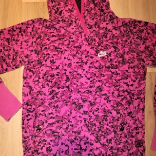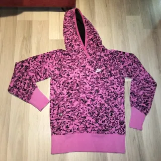 Sudadera con capucha y estampado llamativo. Lleva bolsillos, color rosa fucsia y negro. Talla M junior que equivale a una S de adulto. - Diseño con capucha. - Puños y bajo elásticos.