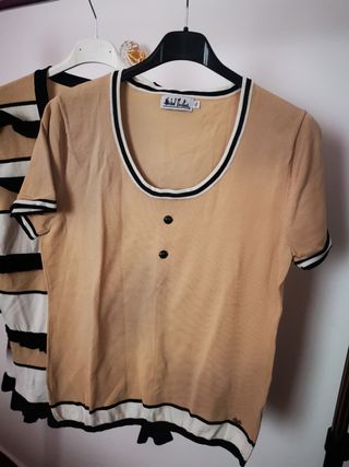 Conjunto de 2 piezas Camiseta y chaqueta Talla XL Tonos beige, blanco y negro Tejido de punto, muy cómodo
