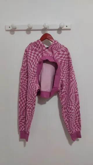 Sudadera con un divertido estampado de estrellas en tonos rosas y blancas,con capucha y cremallera