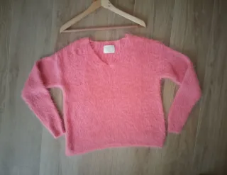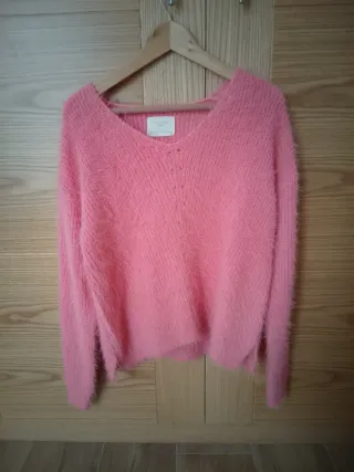 Jersey de punto fino en color rosa, con cuello en pico y manga larga. Presenta un diseño con costuras en relieve en la parte delantera. - Tejido de punto. - Corte holgado. - Bajo asimétrico. Precio 3 euros no negociables ✔ No contesto a ofertas. ✔ Entrego en mano ( No me desplazo) ✔ Envío en menos de 24 horas. ( Lunes a Viernes)
