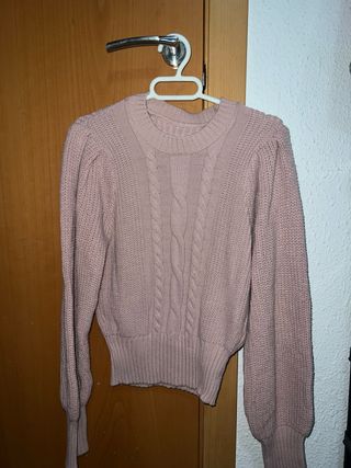 Jersey de punto grueso con cuello alto suelto y diseño. Color rosa empolvado. Talla S. Marca fórmula joven. Tan solo una puesta, precio de compra 39'90€ - Tejido suave y cálido. - Manga larga. - Largo hasta la cadera o un pelín más.