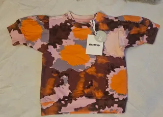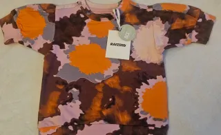 Suéter Raizzed Aya con un estampado abstracto y mangas abullonadas. - Diseño con manchas en tonos naranja, rosa y marrón. - Mangas cortas abullonadas. - Cuello redondo. - Detalle de etiqueta de marca en el bajo.