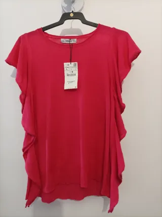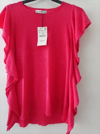 Jersey fino de Zara con un detalle de volante lateral. - Tejido ligero y suave. - Diseño moderno y elegante.