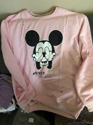 Sudadera con estampado de Mickey Mouse. - Diseño llamativo con Mickey. - Color rosa con detalles negros.