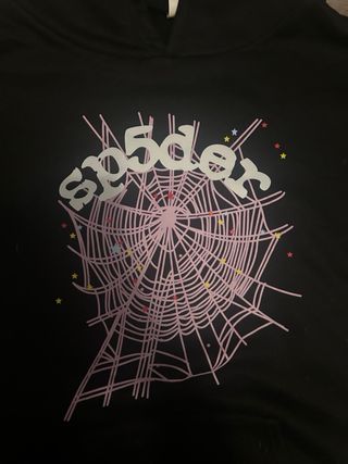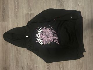 Sudadera SP5DER Negra con Logo Rosa
