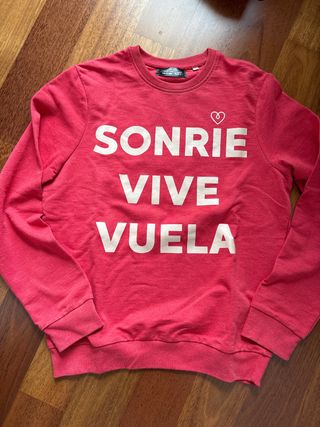 Sudadera con un diseño inspirador y un mensaje positivo. - Mensaje Sonríe Vive Vuela en letras blancas. - Pequeño detalle de corazón blanco. - Cuello redondo y manga larga.