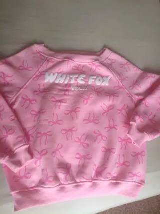 Preciosa sudadera de White Fox (VOL.3) en color rosa pastel con estampado de lacitos en tono más intenso y logo en relieve blanco en la parte frontal. ¡Súper tendencia y muy especial! 🎀 ✨ Estado: Nueva, sin etiquetas 📏 Talla: XS 🧵 Composición: 50% algodón, 50% poliéster 👚 Detalles: Estampado de lacitos por toda la prenda Logo “White Fox VOL.3” en relieve Puños y bajo elásticos Tejido suave y cómodo Ideal para looks casual, coquette o sporty chic. Queda preciosa con jeans, falda o joggers. La vendo porque me queda justa de talla, pero está completamente nueva. Si necesitas medidas o más fotos, escríbeme sin problema 💌✨