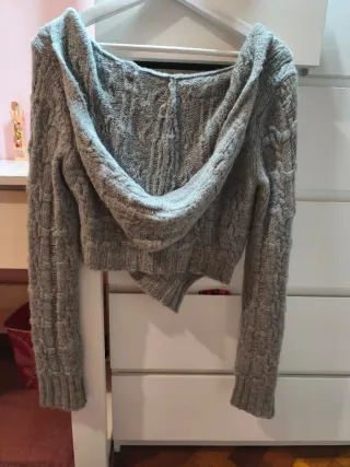 Sudadera con capucha y cremallera completa hasta la cintura, nunca la use ya que no se con que usarla - Diseño cropped. - Puños y bajo elásticos. - Capucha con cordones.