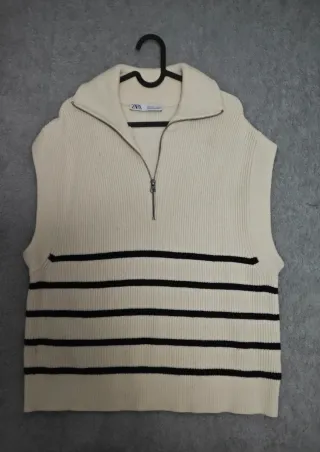 Chaleco de punto de Zara con diseño de rayas. - Cuello alto con cremallera. - Diseño sin mangas. - Rayas horizontales en contraste.