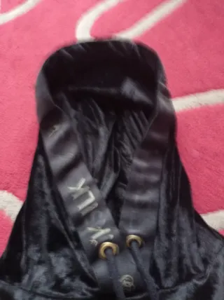 Sudadera Sik Silk de terciopelo. - Diseño con capucha. - Cordones ajustables en la capucha. - Logo bordado en dorado en el pecho. - Puños y bajo elásticos. - Detalle de cordones ajustables en el bajo.