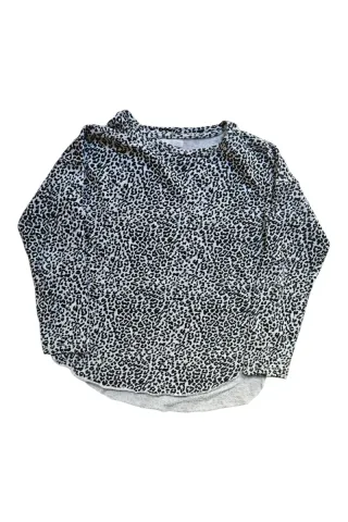 Sudadera cómoda con un llamativo estampado de animal print. - Diseño de manga larga. - Cuello redondo. - Bajo curvo. - abertura lateral