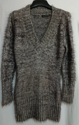 Jersey de pelo suave y calentito, sin estrenar. - Talla S/M. - Diseño con cuello en pico. - Acabado con pelo largo y suave. Largo 72 cm de sisa 45 cm y de manga 60 cm.