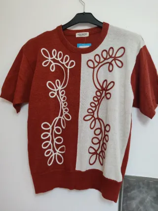 Jersey de mujer con un diseño texturizado único. - Nuevo a estrenar. - Cuello redondo. - Manga corta. - Tejido con relieve.